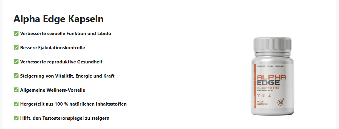 Alpha Edge Erfahrungen ist ein Nahrungsergänzungsmittel in Kapselform, das entwickelt wurde, um die tägliche Vitalität zu unterstützen und zu erhalten. Egal, ob Sie eine aktivere Libido wünschen oder sich körperlich und geistig energiegeladener fühlen möchten, Alpha Edge Capsules unterstützt den Körper dank einer Kombination von Pflanzen, die für ihre positive Wirkung auf Potenz, Ausdauer und Kreislauf bekannt sind. Die 100 % natürliche Formel lässt sich problemlos in den Alltag integrieren, ohne Überlastung oder Sucht zu verursachen, und stärkt das Selbstvertrauen und die Leistungsfähigkeit des modernen Mannes.