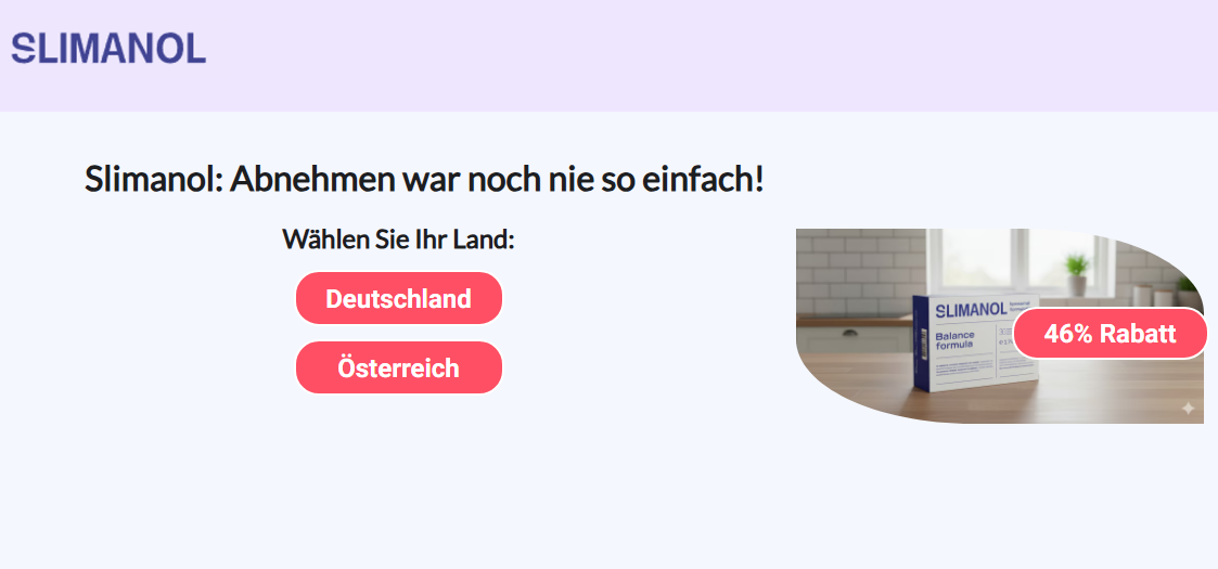 Sie können Slimanol hier kaufen, indem Sie auf das Symbol unten klicken. Sie werden auf eine Webseite weitergeleitet, wo Sie nur ein Formular ausfüllen und ein paar Angaben machen müssen. Dann können Sie das Produkt in Kürze erhalten.